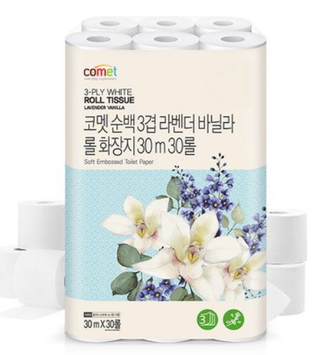 이제 코멧 순백 3겹 라벤더 바닐라 롤화장지로 바꿔보세요! ✨