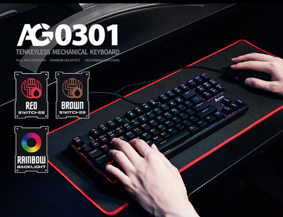 에이투 유선 텐키리스 기계식 게이밍 키보드 (모델 AG0301, 적축)는 컴팩트한 텐키리스 디자인과 안정적인 유선 연결을 제공하는 고성능 키보드입니다.